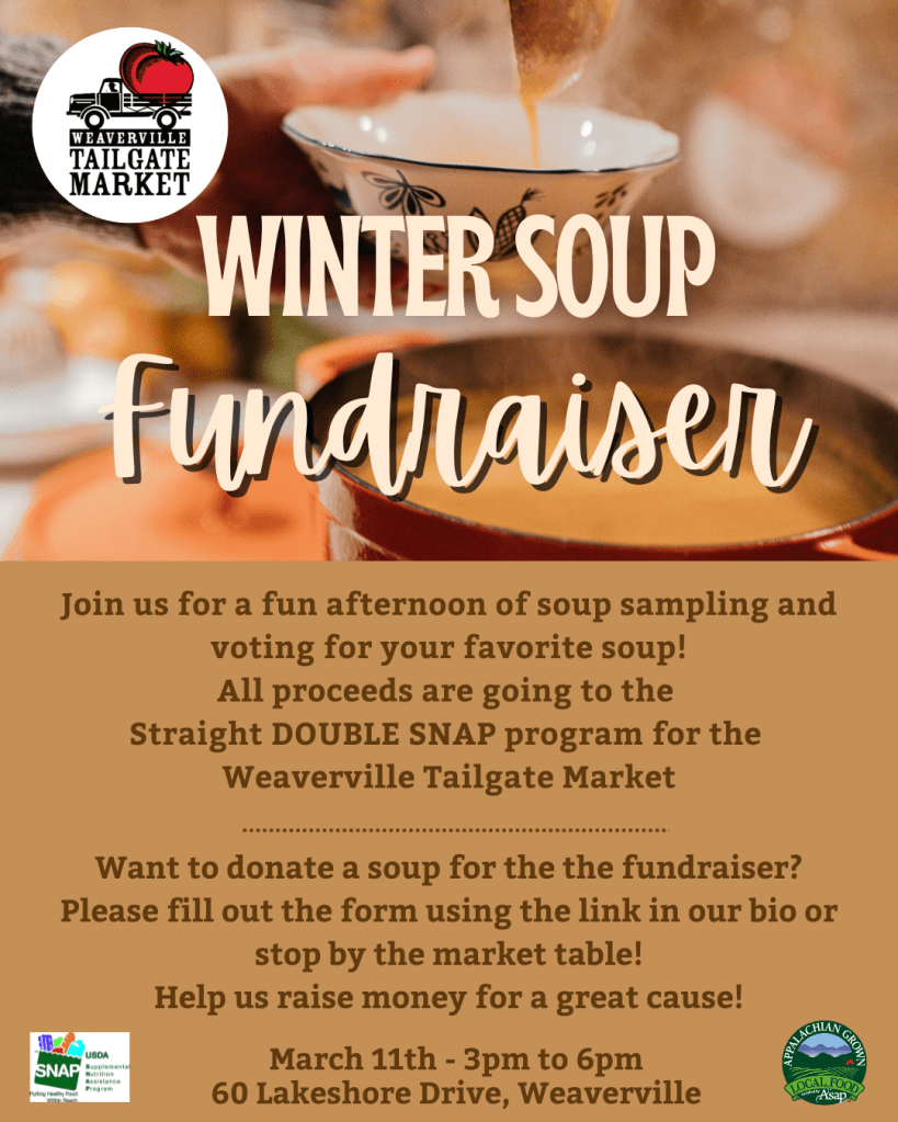 Want to bring a soup for the fundraiser? CLICK HERE! Or stop by the market table when you come to shop this week!